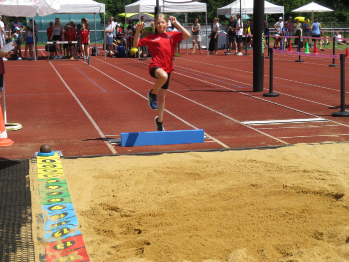 Bei über 34 Grad und strahlendem Sonnenschein ging es auf die Tartanbahn zum 2x50m Sprint aus dem Dreipunktstart. Die Kids zeigten ihr Können trotz der hohen Temperaturen und sprinteten auf einen tollen zweiten Platz unter allen 13 Teams. Ebenfalls Platz zwei gab es im Weitsprung und im Schlagballwurf, geworfen wurde mit einem Gummistab. In Weissach wurde noch eine zweite Wurfdisziplin ausgetragen um die Kinder an den Diskuswurf heranzuführen, geworfen wurde mit einem Tauchring. Man konnte aus dem Stand werfen oder mit der Diskusdrehung. Hier landeten die Schorndorfer auf dem Bronzerang, den fünften Platz gab es bei der Staffel, gelaufen wurde eine Bahn über Hürden, der Rückweg wurde ohne Hürden absolviert. Hier erzielten die SG Kids den fünften Platz.