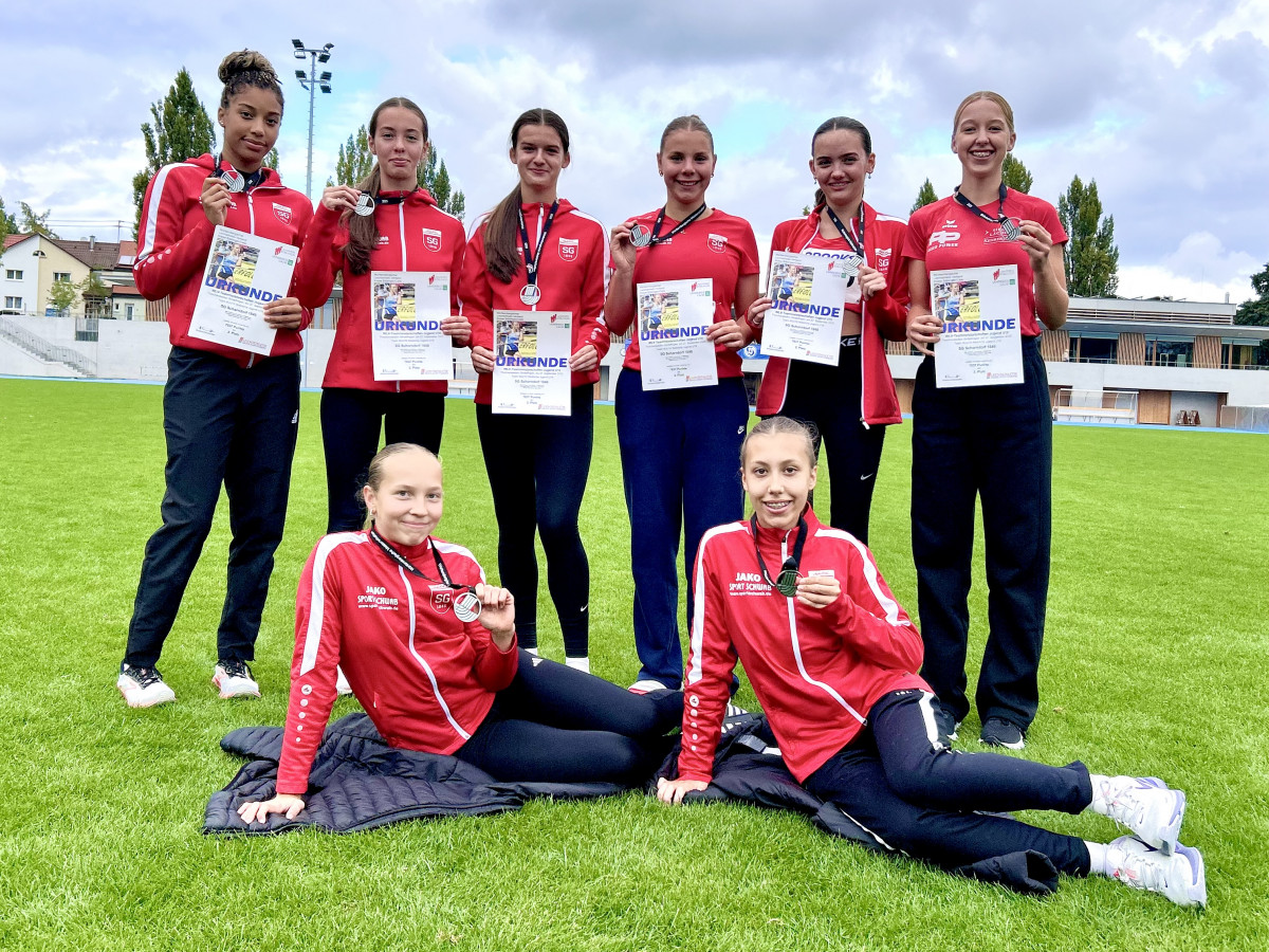 Die Mannschaft bestehend aus Mila Grimmer, Lara Körber, Ina Mabinuori, Lea Möck, Nele Mroß, Julia Petek, Adriana Simunovic und Nina Vasic zeigte trotz herbstlicher Temperaturen starke Leistungen. Besonders erfolgreich punkteten die Athletinnen aus der Daimlerstadt über die 4x 100 m (Körber, Vasic, Grimmer, Mabinuori) als schnellste Staffel aller Teams in 51,22 s. Auch über die 80 m Hürden konnten die Schorndorferinnen in Person von Lea Möck (12,87 s) und Lara Körber (12,96 s) die meisten Punkte einheimsen. Am Ende musste das Team mit 7.637 Punkten nur den starken Ulmerinnen den Vortritt lassen und durfte sich zum Saisonabschluss über den Württembergischen Vizemeistertitel freuen.