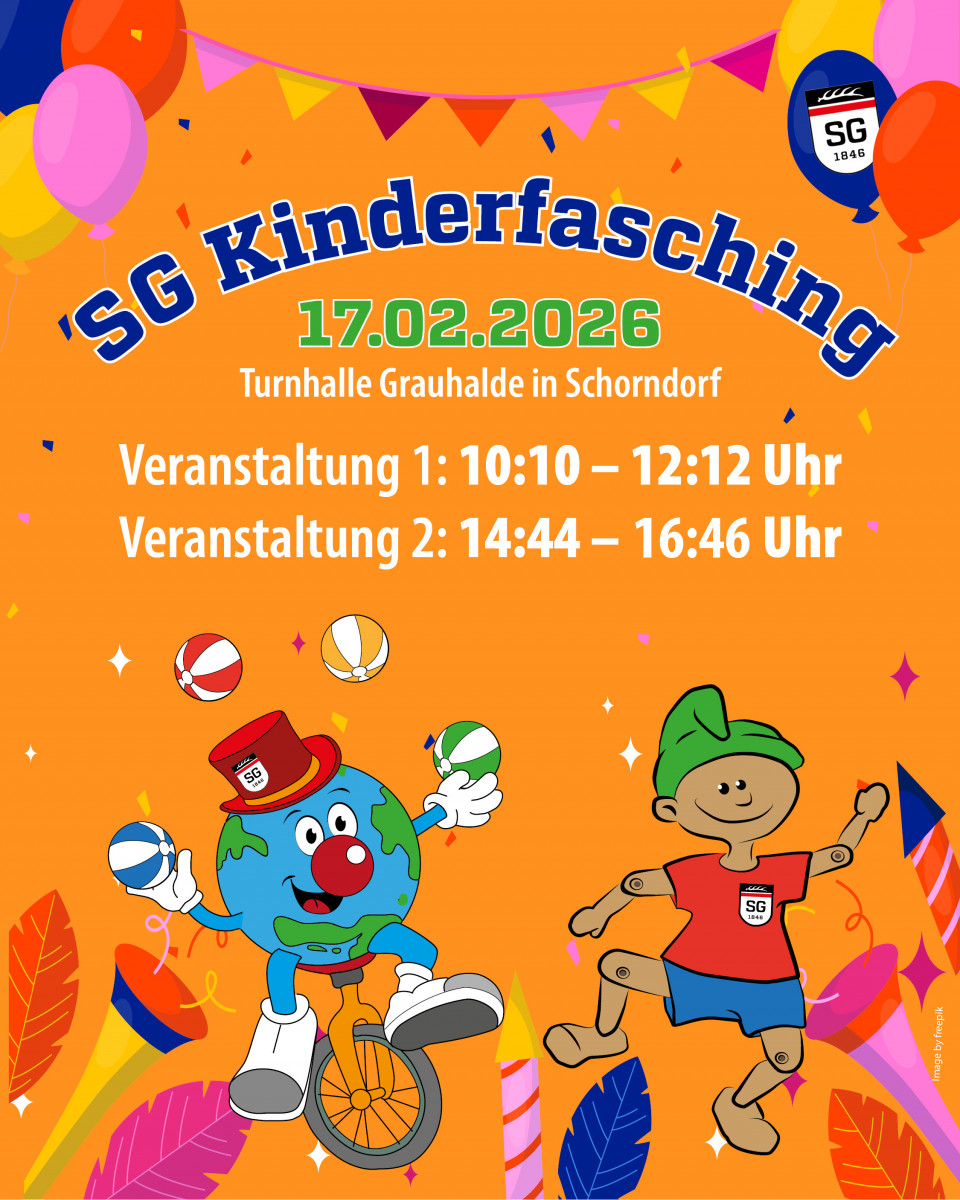 Am Dienstag, 17. Februar 2026, laden euch herzlich zu unserem beliebten Kindersportfasching in der Sporthalle Grauhalde ein!