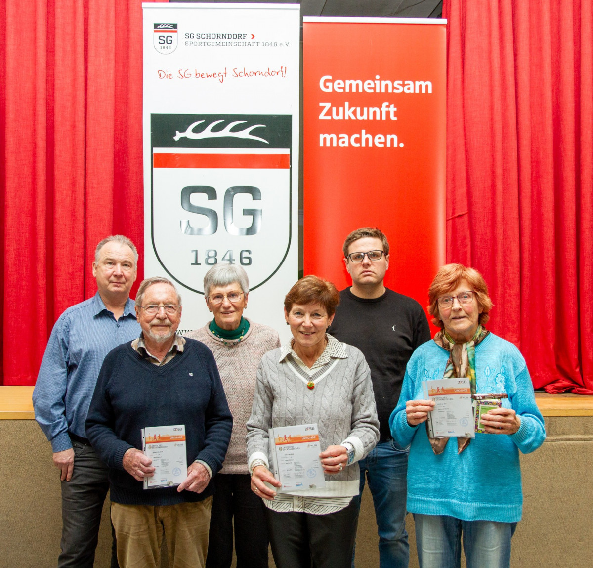Ehrennadeln erhielten: Miklas Hahn und Philipp Wagner (5x), Karl-Heinz Philippi (15x), Uli Bochert, Brigitte Bochert, Markward Haase (20x), Iris Ehmann, Frank Marzinzik, Silke Olbrich (25 x) sowie Edeltraud Strobel für 45x Sportabzeichen.